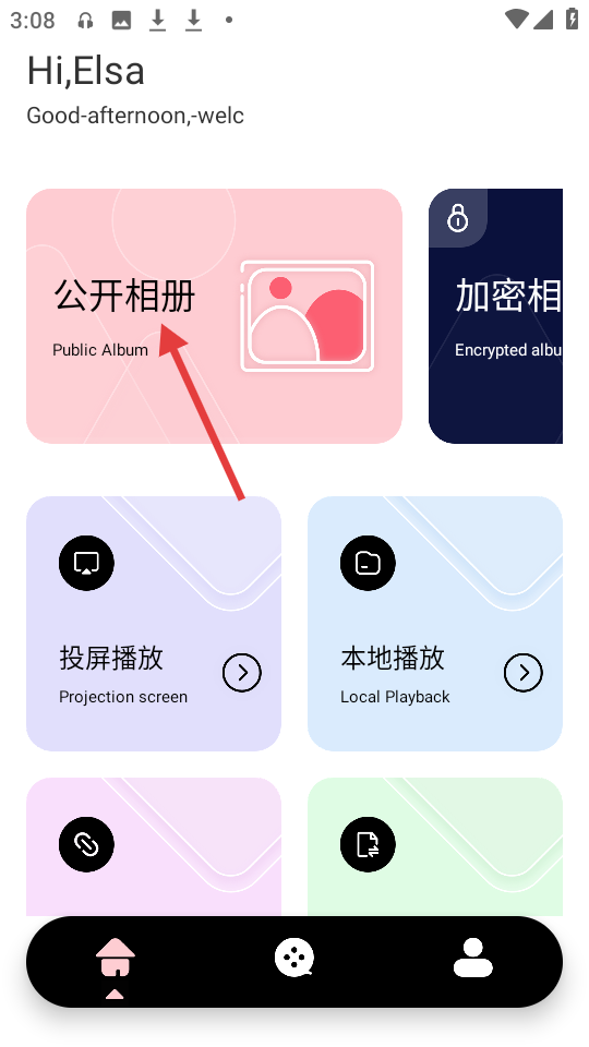 1、在应用主界面点击【公开相册】,进入相册界面。
