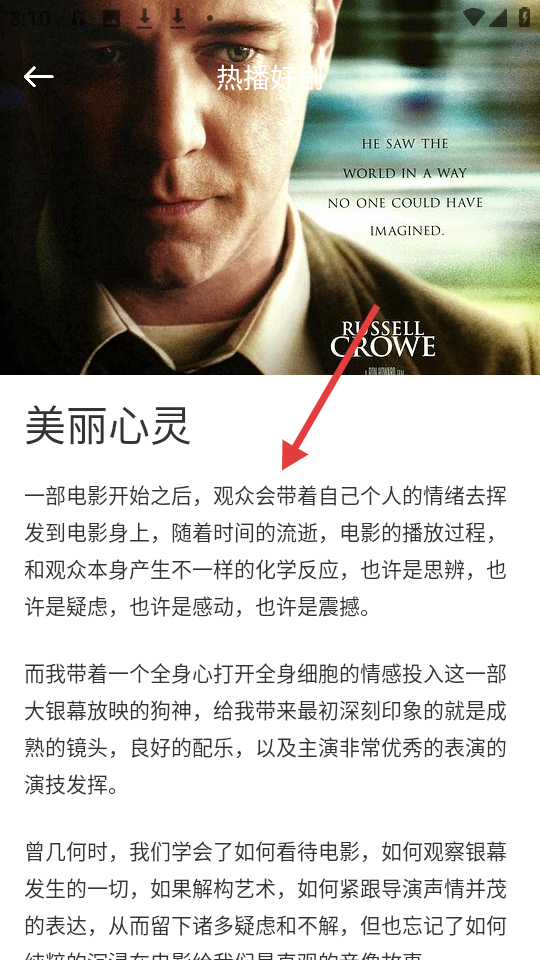 4、在《美丽心灵》详情页面,可查看影片相关介绍内容。