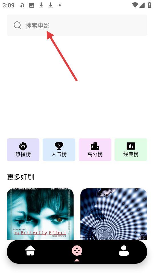 1、点击顶部【搜索电影】搜索框,进入搜索输入界面。