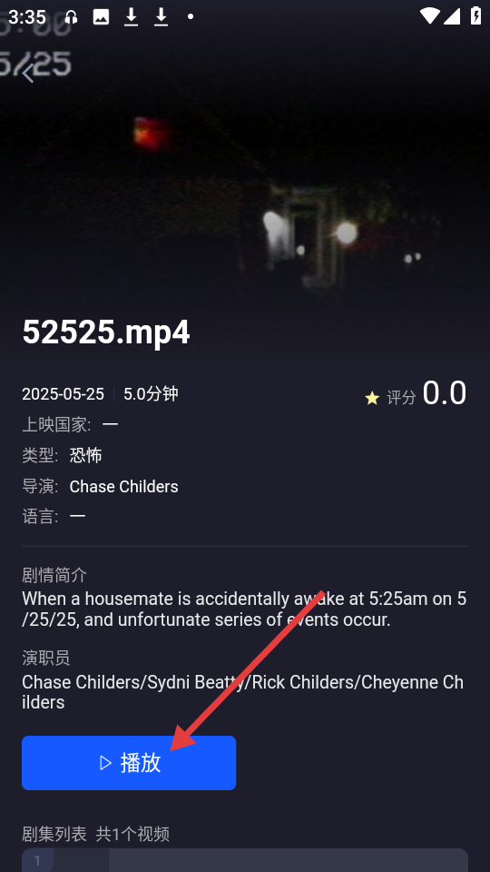 1、在所有电影板块中点击“52525.mp4”视频,进入该视频的详细列表界面。