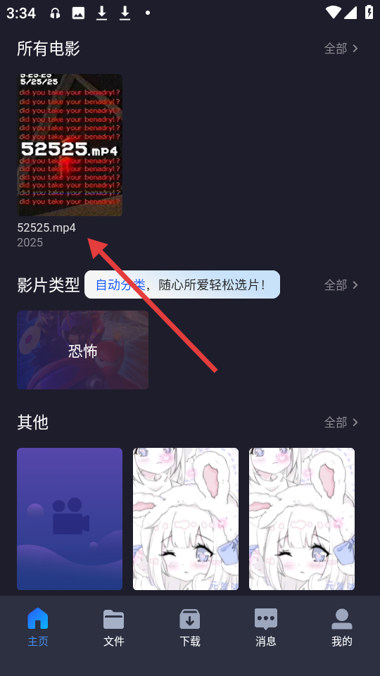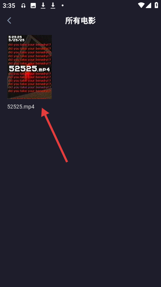 2、在“所有电影”的详细列表界面再次点击“52525.mp4”,进入视频详情页面。