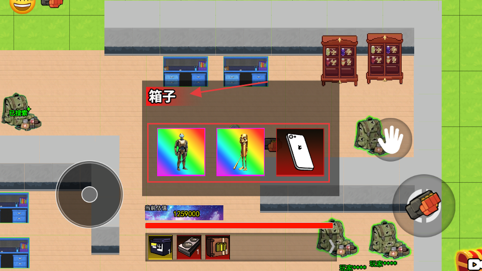 4、搜刮【箱子】获取【机器人】【木棍人】【手机】,提升战力助力校园对抗。