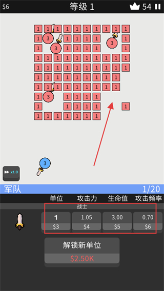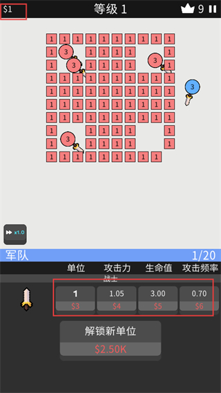 4、战斗时观察敌人分布,如带有数字标识的敌人,优先攻击聚集区域,逐步清理战场,同时积累资源解锁新单位。