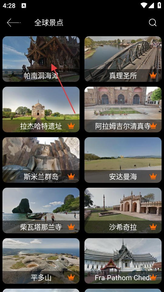 3、在景点列表中,选择心仪的景点如“帕南洞海滩”,可进入该景点的街景界面。