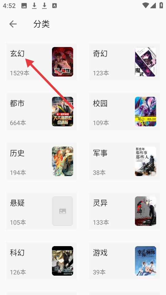 2、在分类页面点击【玄幻】,进入玄幻小说列表。