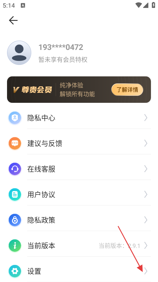 2、在个人中心界面,点击【设置】选项,可进入设置界面。