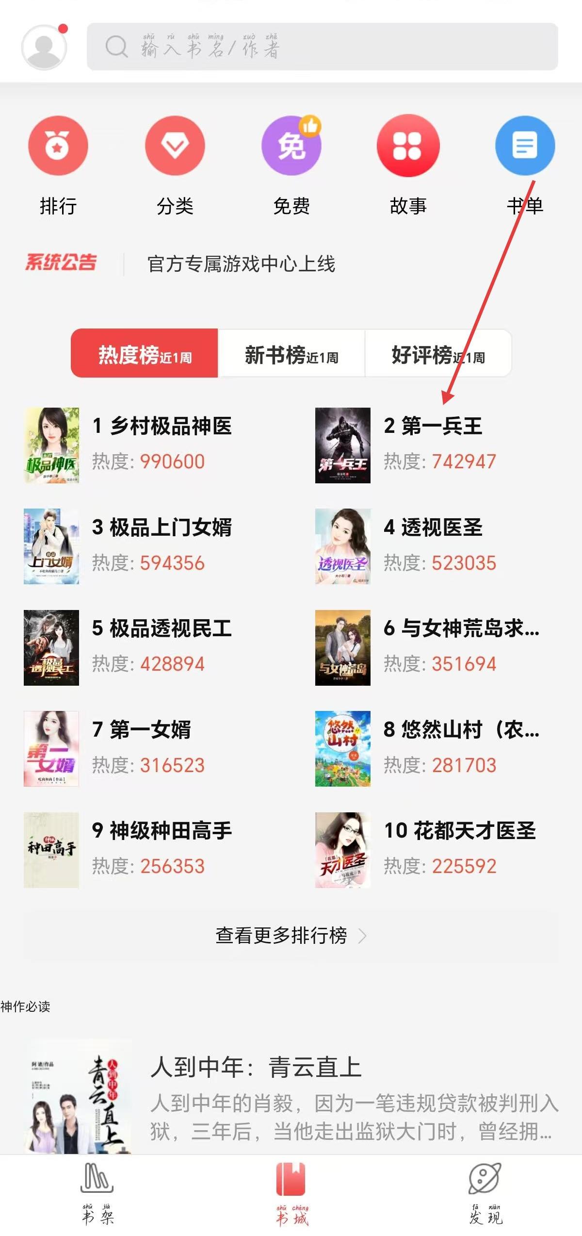 2、在书城页,快速找到热门书籍如【第一兵王】进行阅读。