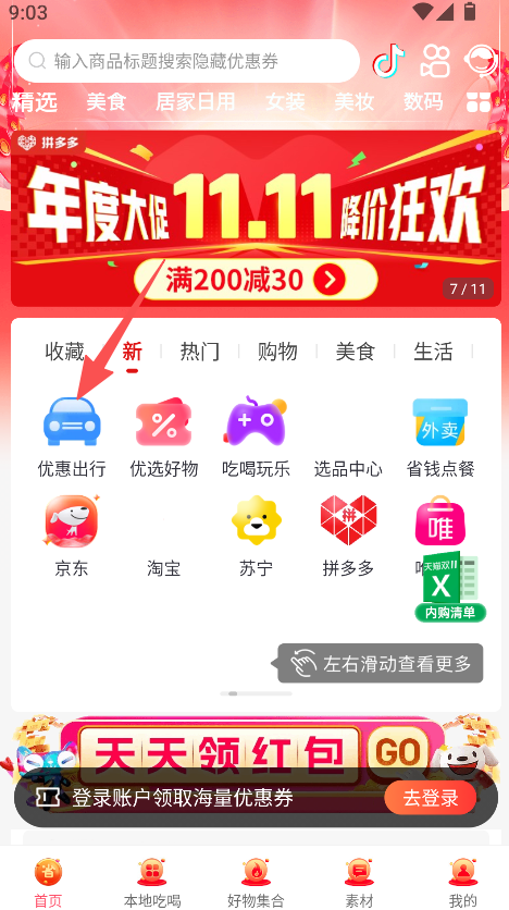 2、入口聚合便捷,电商平台、出行服务入口集中在软件内,用户无需下载多个 APP,一处即可获取多平台优惠。