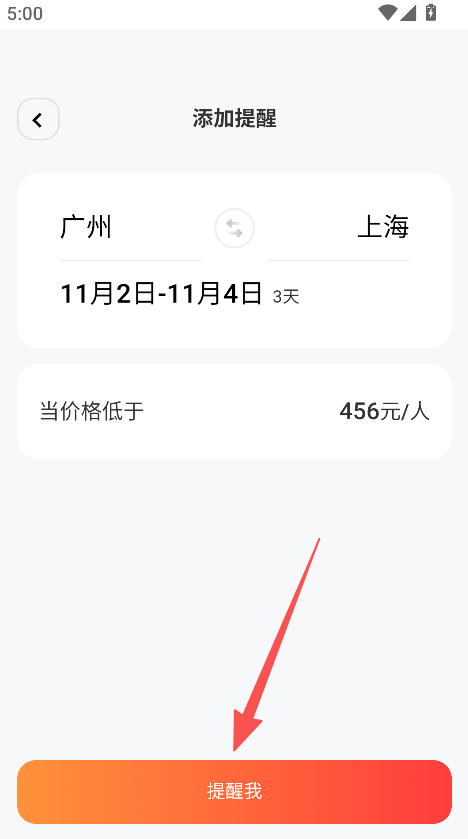 2、提醒设置流程简洁,仅需选择出发地、目的地、时间和价格,即可完成监控,操作无门槛。