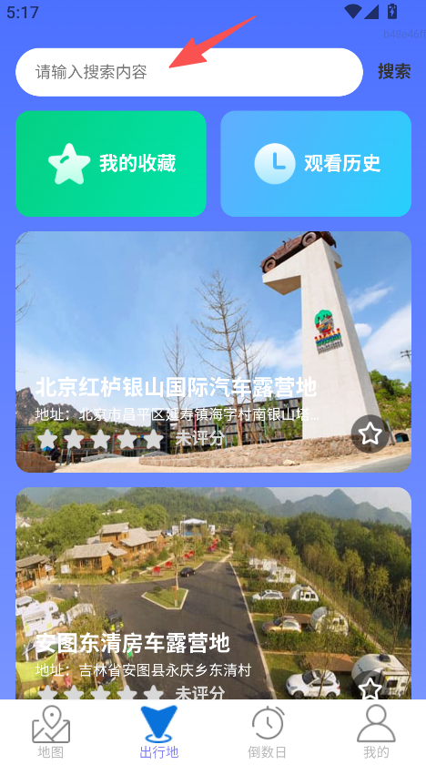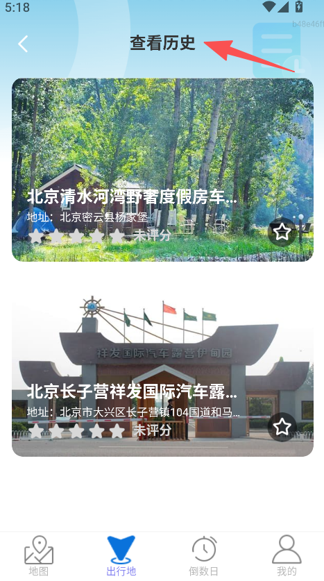 3、点击观看历史,查看之前浏览的露营地,方便回顾选择。