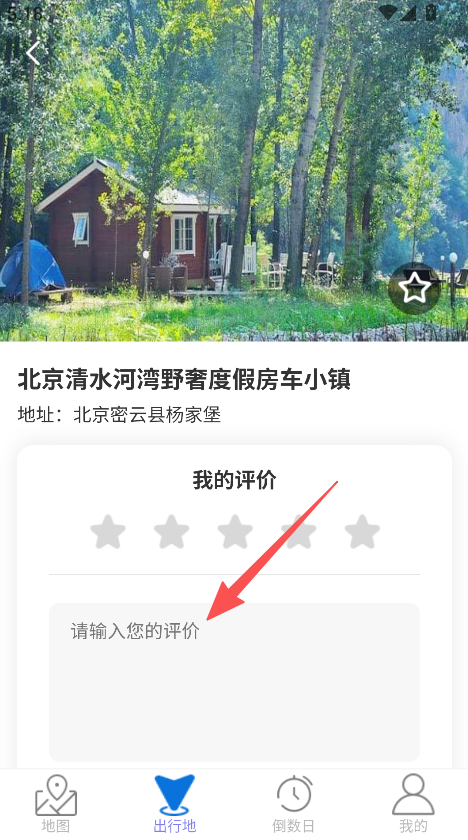 2、选择露营地进入详情页,输入评价,记录露营体验。