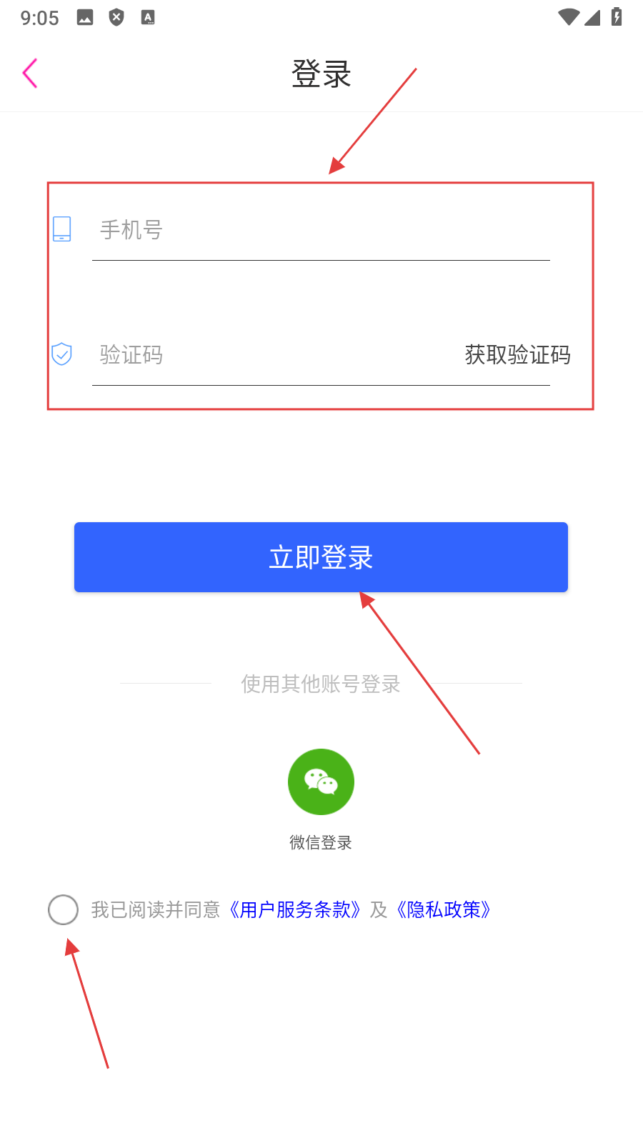 4、在登录页面【输入信息勾选协议】后点击【立即登录】,即可完成登录操作。
