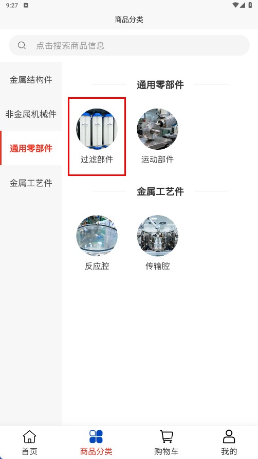 2、进入【通用零部件】后,点击【过滤部件】,进入商品列表,浏览相关商品。