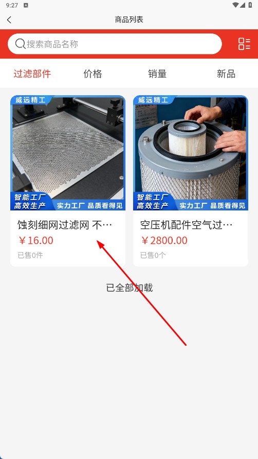 3、在过滤部件商品列表,查看商品价格、销量,点击商品进详情页了解。