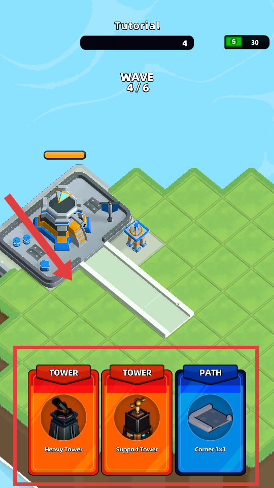 1、在游戏中选择【Heavy-Tower】【Support-Tower】等防御塔和路径建筑,布置防御设施。