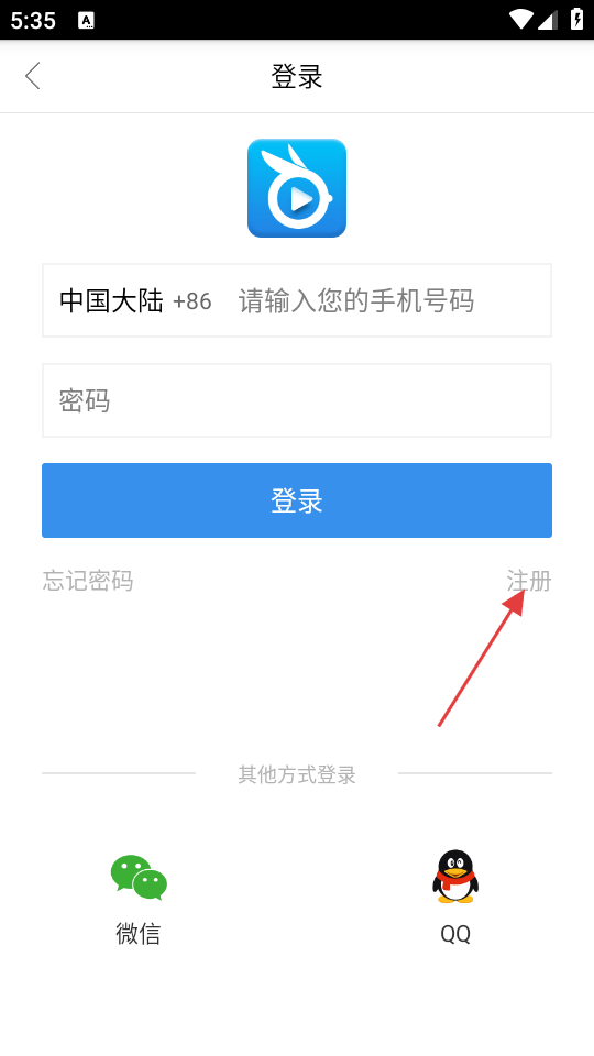 3、在登录界面里,点击【注册】按钮,进入注册页面。