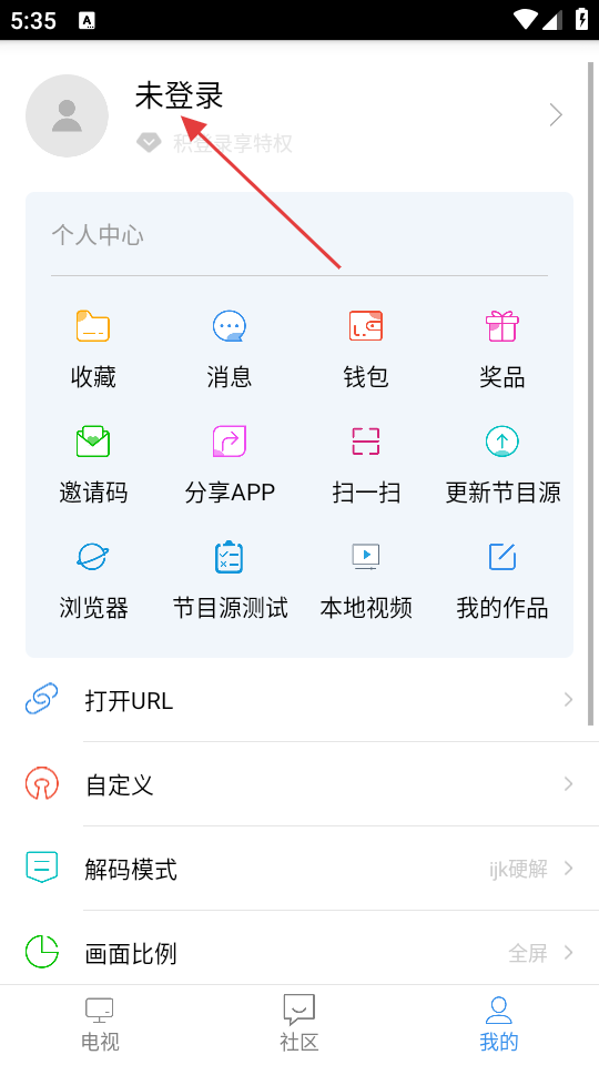 2、在个人中心页面中,点击【未登录】区域,进入登录界面。
