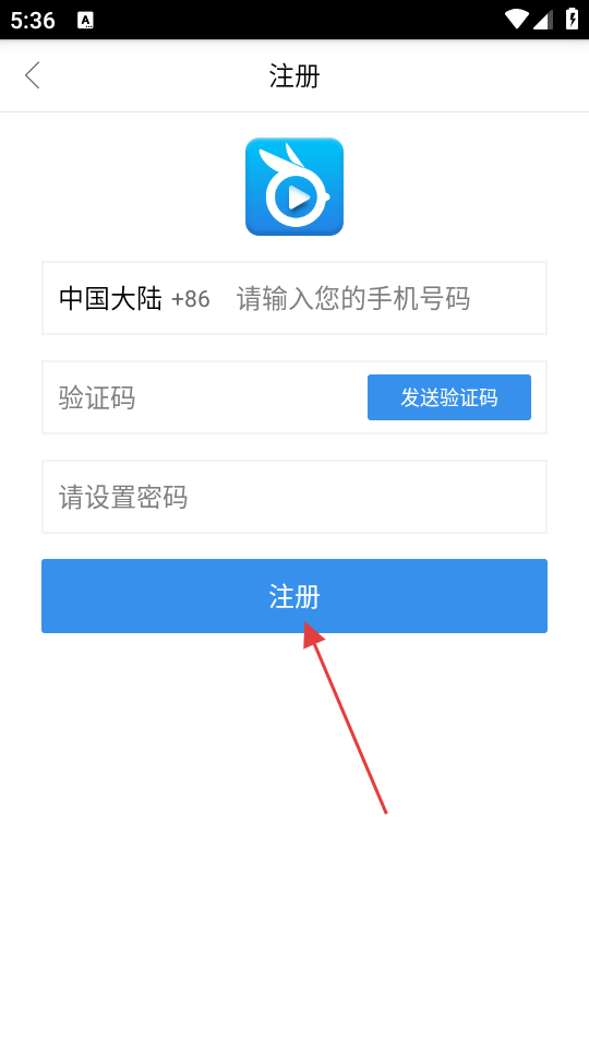 4、在注册页面中,填写手机号码、验证码和密码后,点击【注册】按钮完成注册。