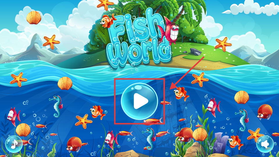 1、点击界面中间的【播放】按钮,进入关卡,开启海洋消除冒险,解锁新鱼类。