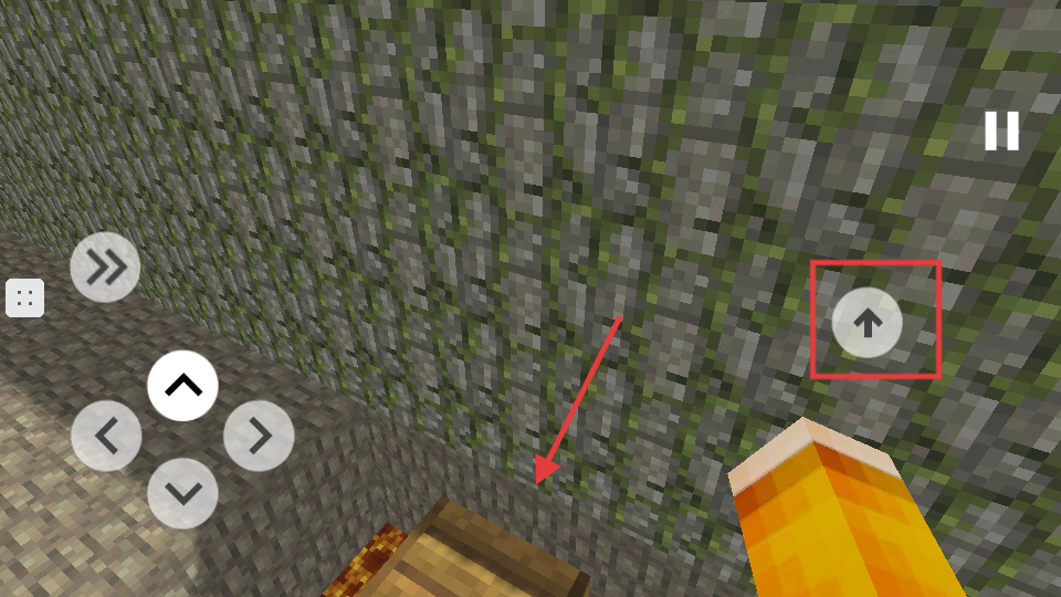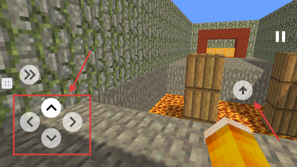 3、当角色靠近障碍时,按下右侧【↑】键跳上木箱,避免落入岩浆,继续向终点前进。