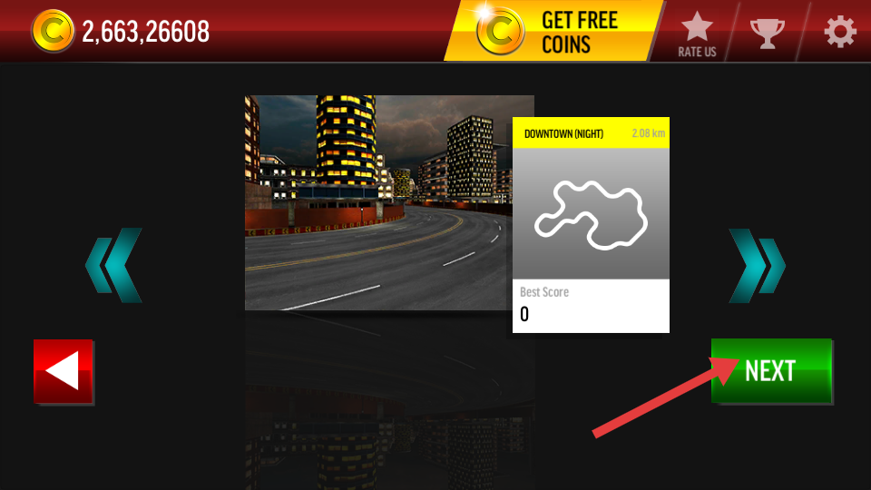 2、点击【NEXT】按钮,选择赛道,准备开始比赛。