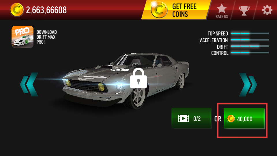 1、在车库选择心仪车辆,花费金币解锁,提升赛车选择。