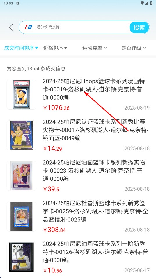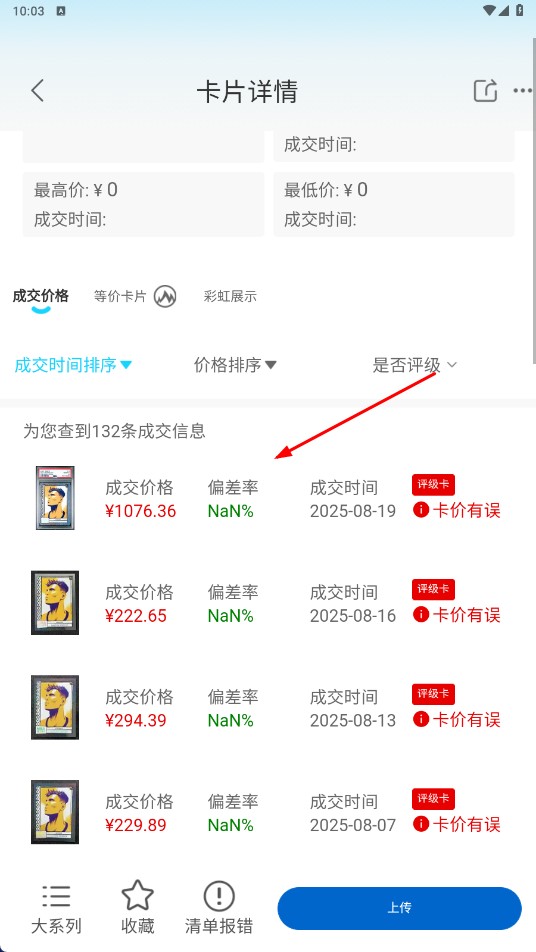 4、在卡片详情页可查看成交价格、成交时间等信息,了解卡片交易情况。