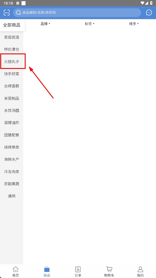 2、在分类页点击选择【火锅丸子-分类标签】,查看对应商品列表。