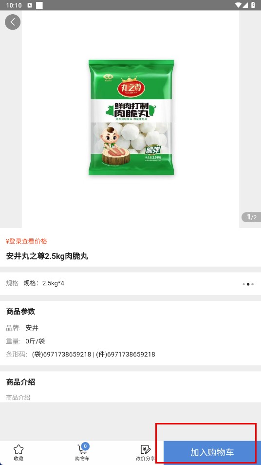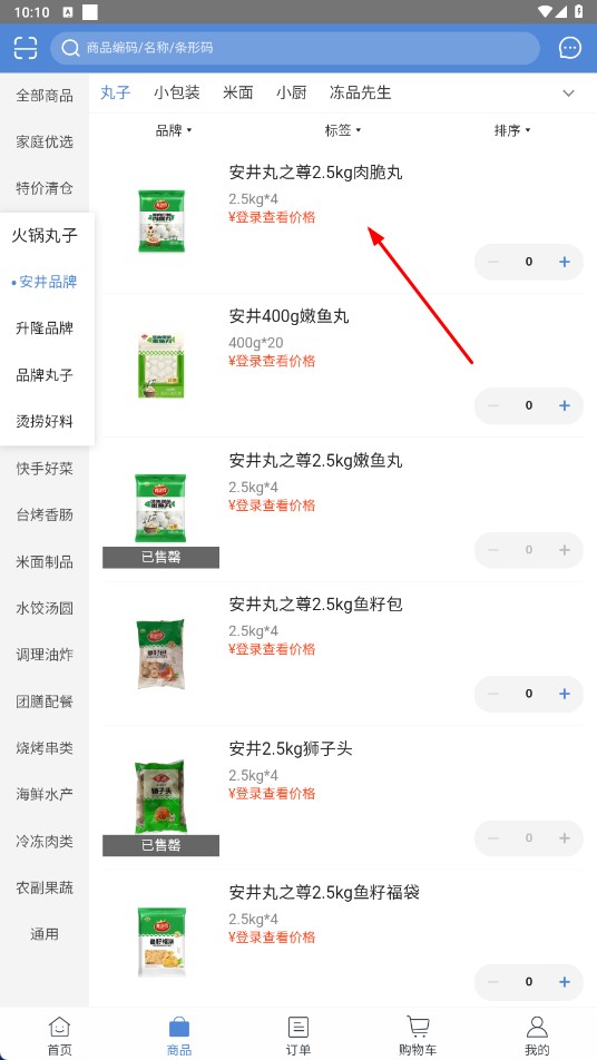 3、在商品列表找到如【安井丸之尊2.5kg肉脆丸-商品名称】并点击,进入商品详情页。