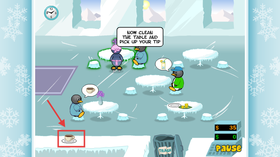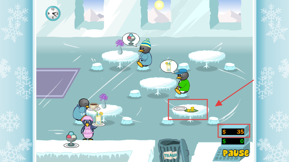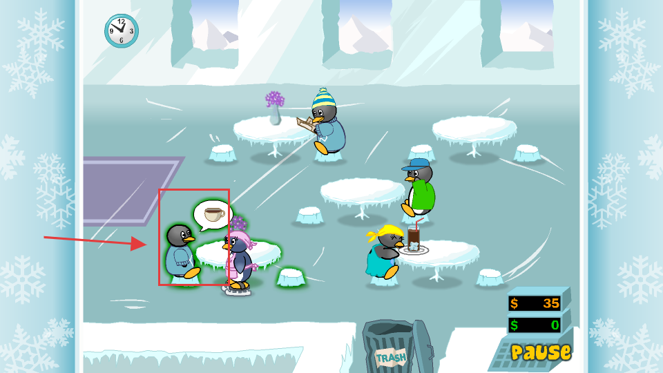 2、关注顾客点餐需求,如这位想要【咖啡】的企鹅,及时提供对应餐品,提升顾客满意度。