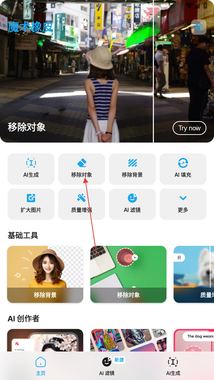 1、点击【移除对象】,进入图片选择页面。