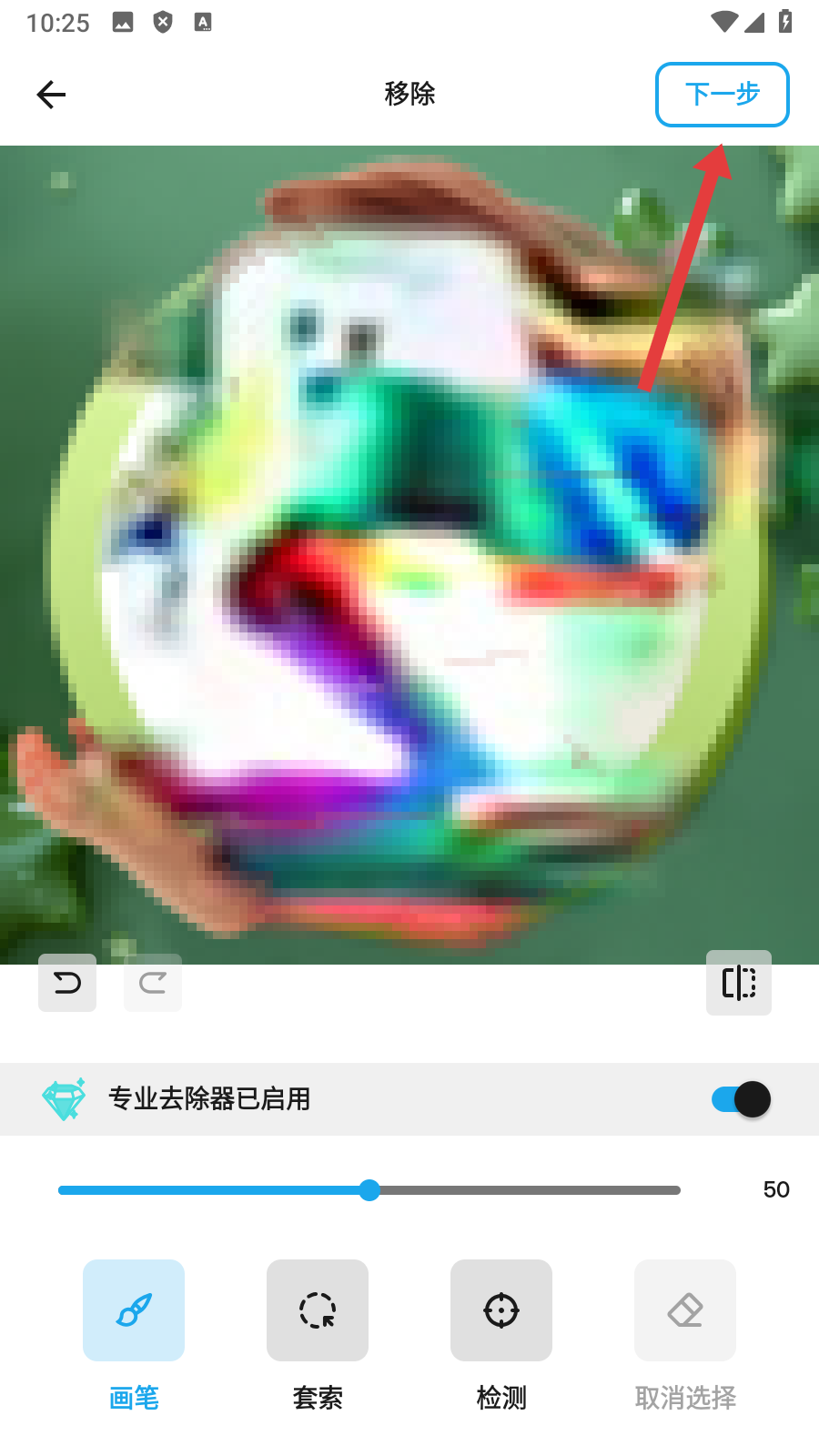 4、对象移除完成后,点击【下一步】,即可完成图片抠图操作。
