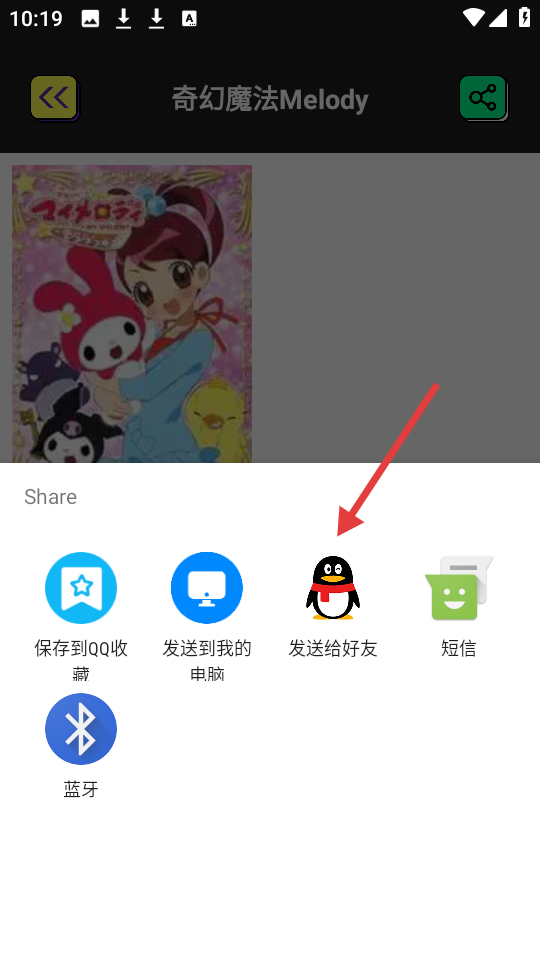 4、在分享选项里,选择“发送给好友”,可将该动漫分享给QQ好友。