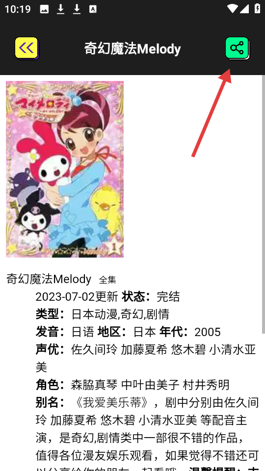 3、在《奇幻魔法Melody》详情页,点击右上角的分享图标,打开分享选项。