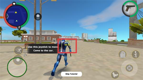 1、根据提示,操控摇杆移动角色,向【50M】外的车辆靠近。