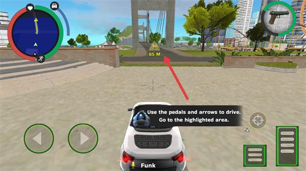 3、进入车辆后,按提示,操控按键驾驶车辆前往【85M】外的目标区域。