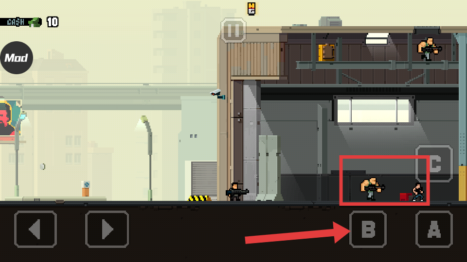 3、遇到敌人后,点击右侧【B按键】进行攻击,消灭敌人。