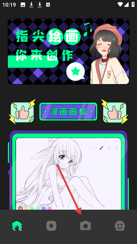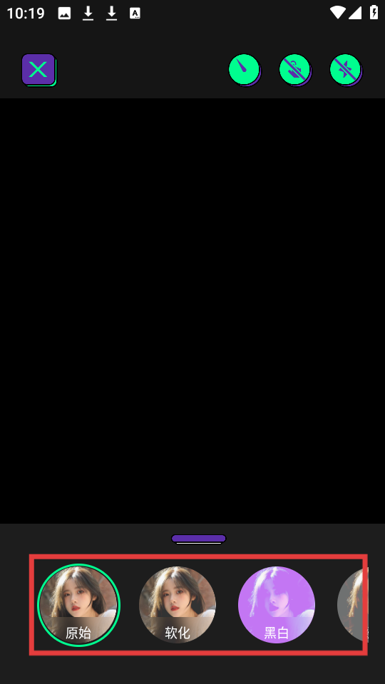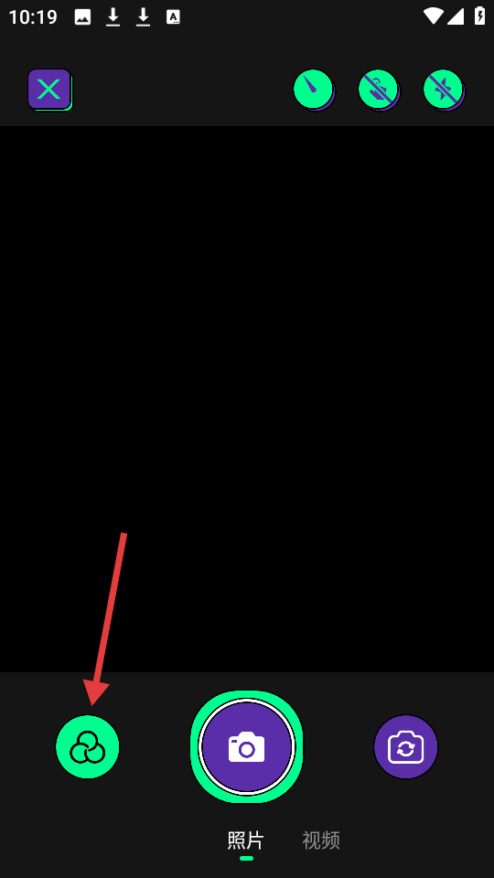 1、进入软件,点击底部相机图标,进入拍摄相关功能界面。
