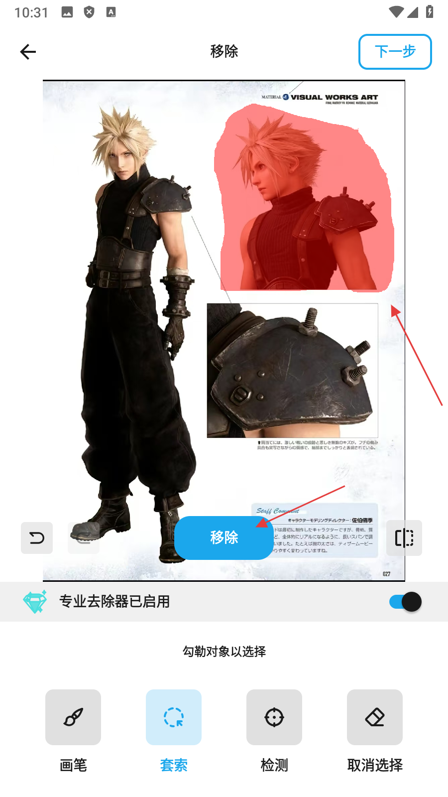 3、使用【套索工具选择要移除的对象】后点击【移除】。