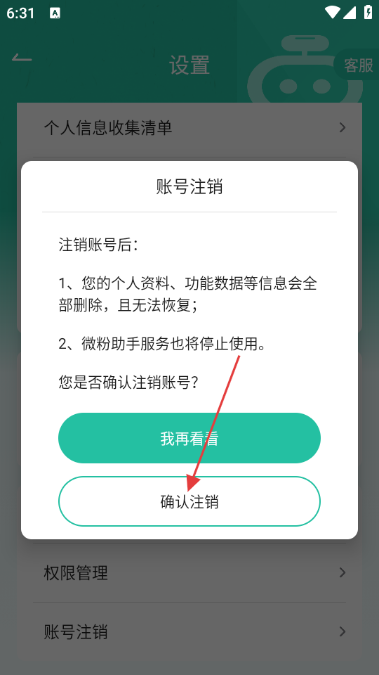4、在账号注销确认界面中,点击【确认注销】按钮,完成账号注销操作。