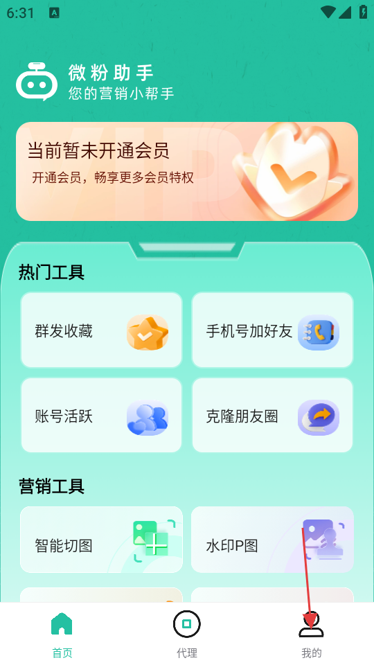 1、在微粉助手主界面,点击底部的【我的】按钮,进入个人页面。