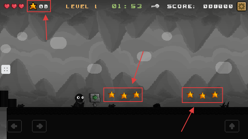 2、关注星星分布,规划移动路径,跳跃踩踏敌人同时收集星星,提升关卡完成度。
