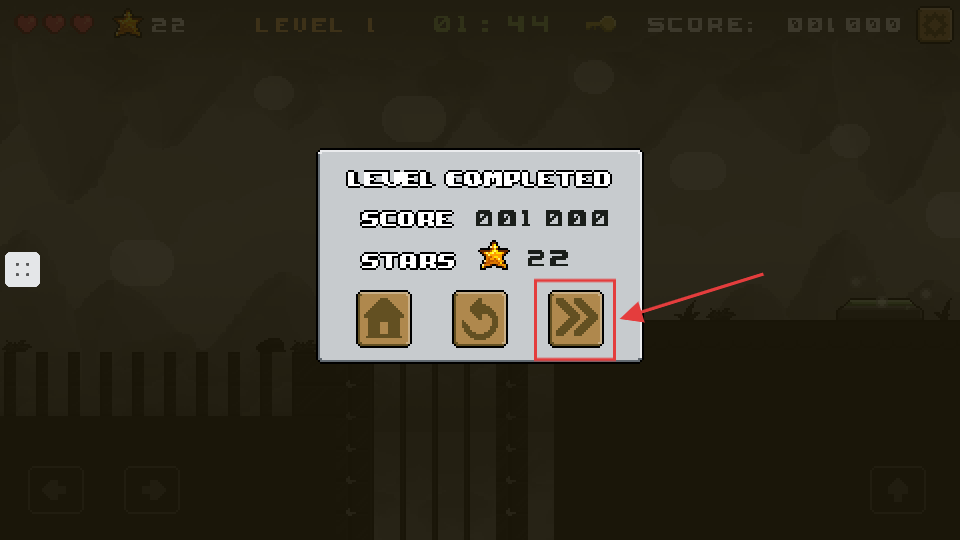 4、关卡完成后点击双箭头按钮,进入下一关,继续挑战积累星星与分数。