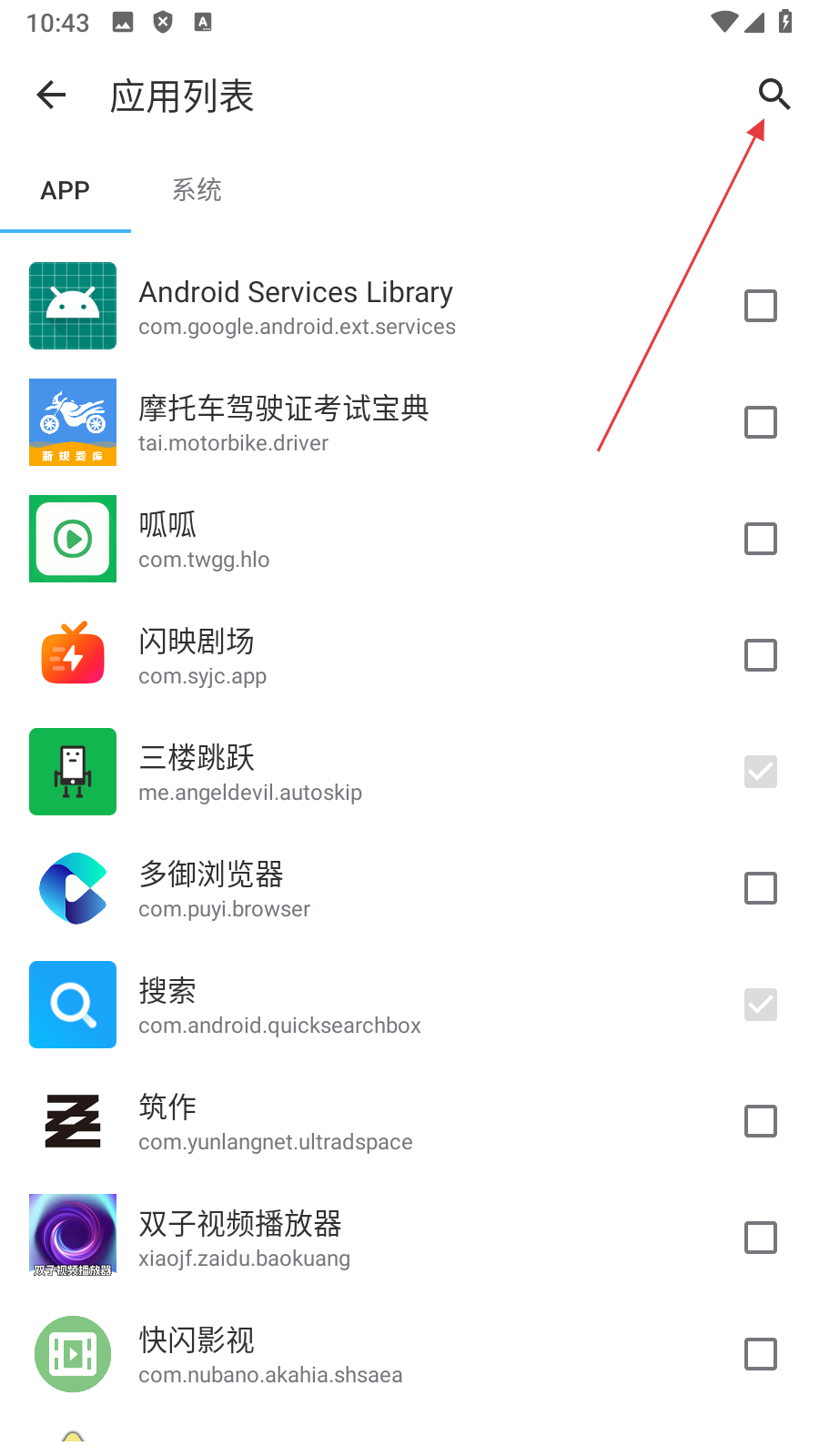 2、在应用列表页面【点击搜索图标】,激活搜索框。