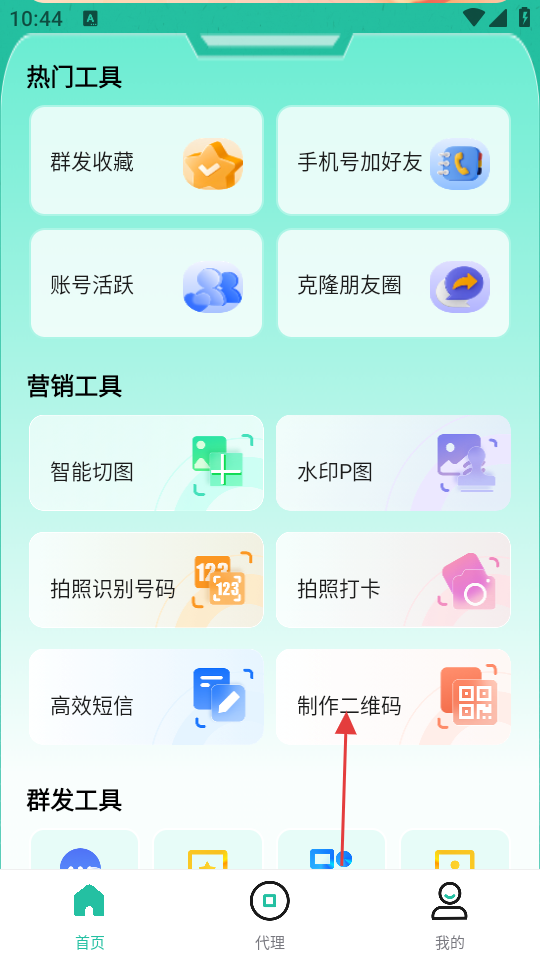 2、在微粉助手主界面,点击【制作二维码】选项,进入制作二维码界面。
