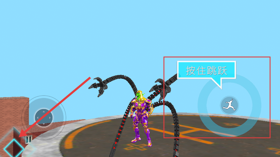 1、游戏中按住右侧跳跃按钮可控制角色跳跃,左侧方向箭头是玩家要到达的目的地。