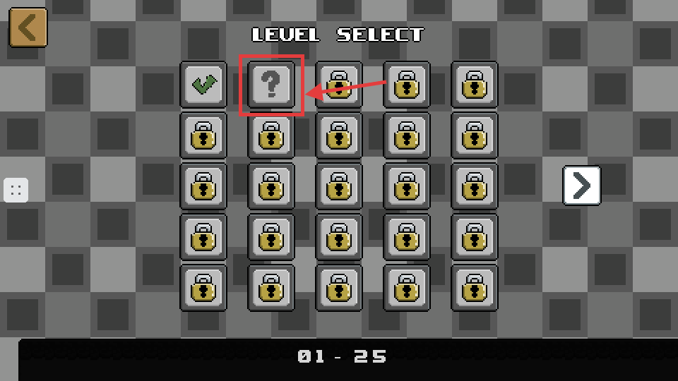 1、在【LEVEL-SELECT】界面,先完成已解锁关卡推进进度,【?】关卡可尝试探索新挑战。