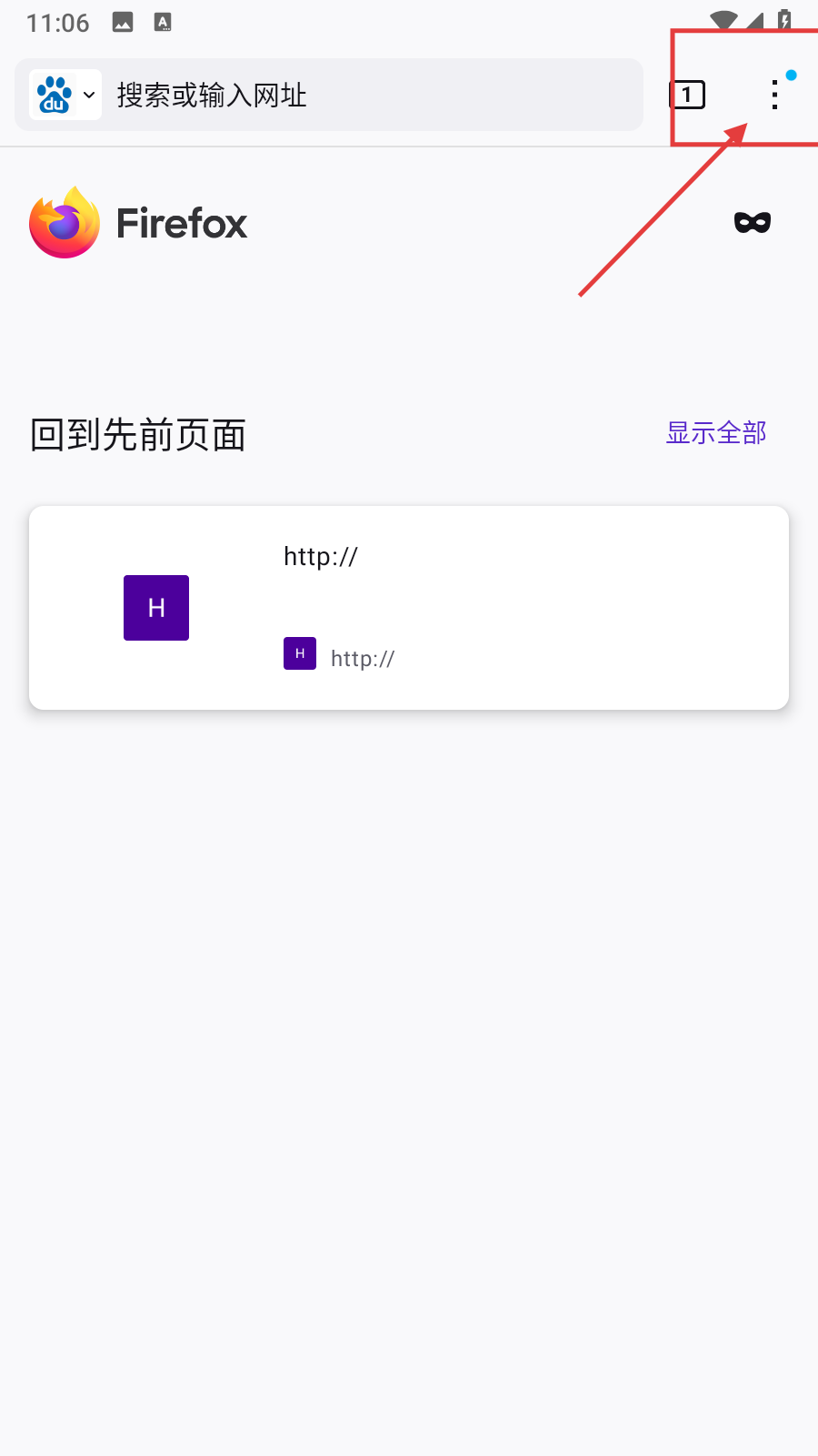1、点击浏览器右上角的菜单按钮(三个点的图标),展开功能菜单。