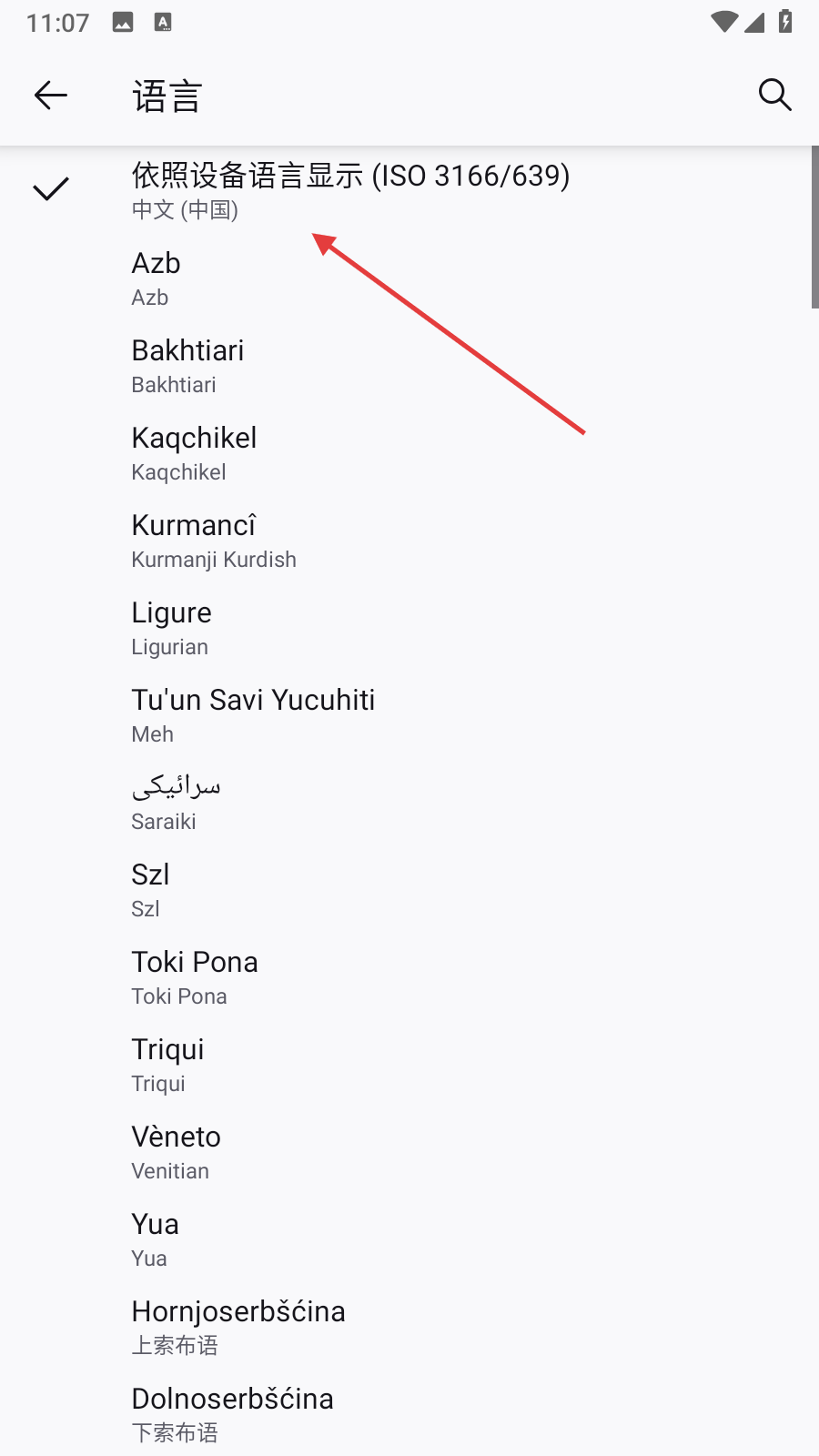 4、在语言设置页面,可选择【中文】或其他语言选项,如Azb、Bakhtiari等,来设置浏览器的显示语言。