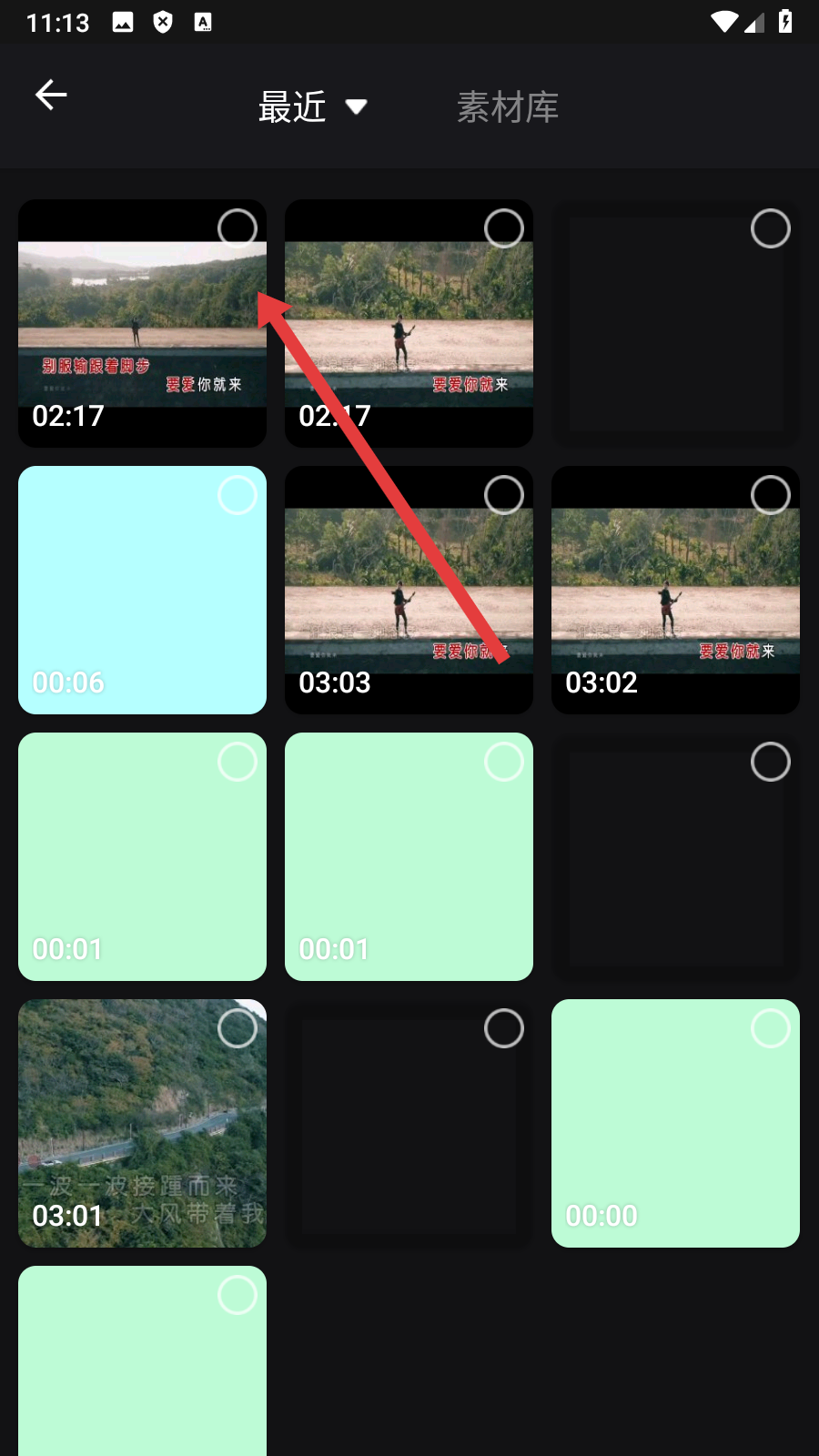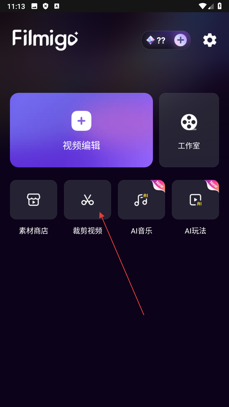 1、点击【裁剪视频】,进入视频素材选择页面。